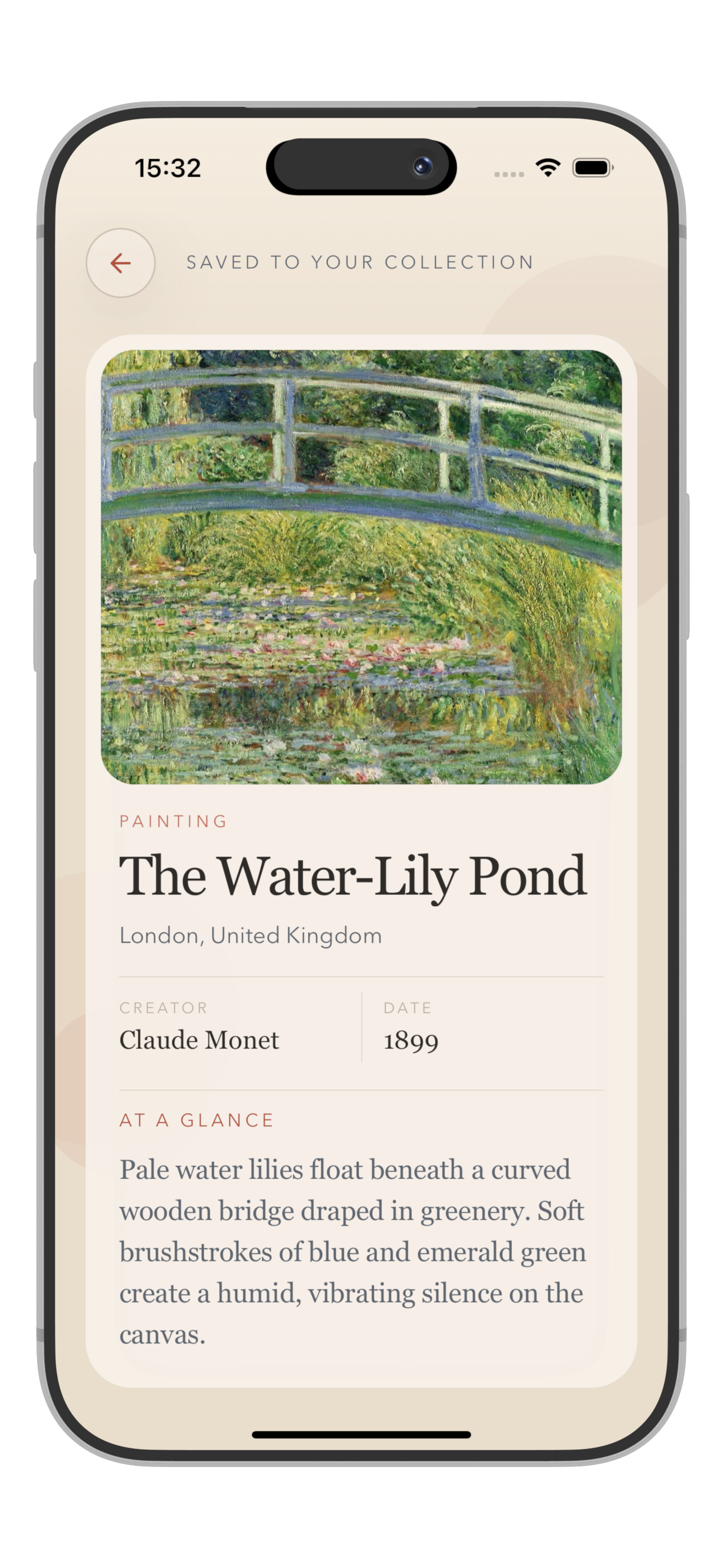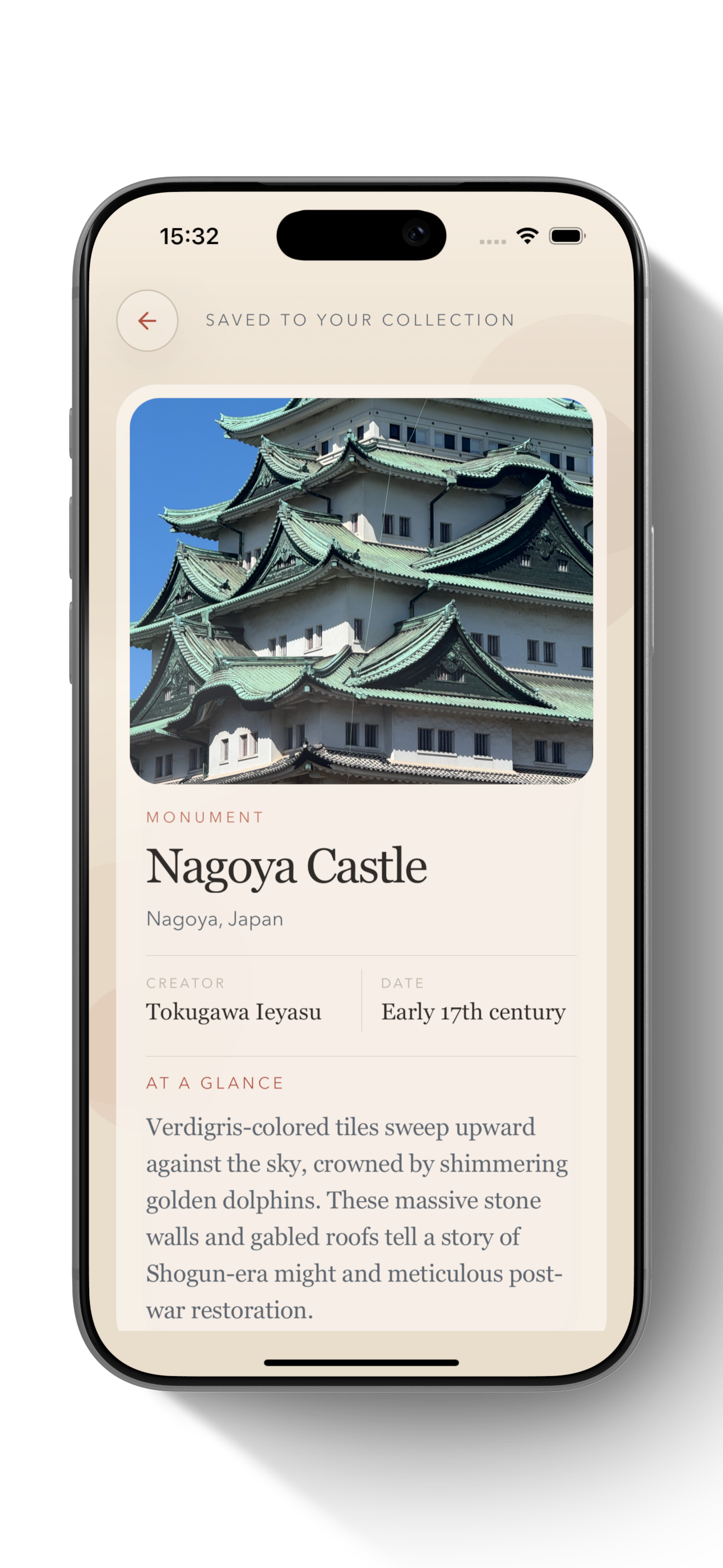 Point your camera at a landmark, artwork, or object you notice,hear a short explanation, and keep it for later.