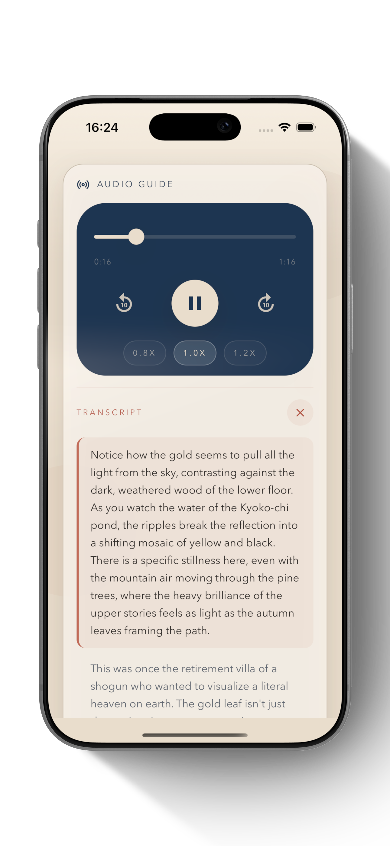 HearHere is designed for cultural and place-based discovery, including museum works, architecture, monuments, temples, sculptures, historic objects, and notable details you come across while traveling.